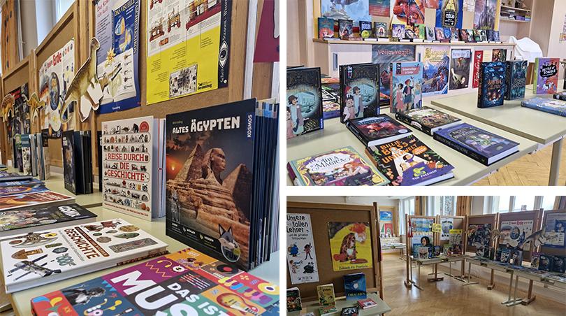 Bücher, Bücher, Bücher – wurden bei der alljährlichen vorweihnachtlichen Buchausstellung im Zeichensaal unserer Schule präsentiert. Die Stockerauer Buchhandlung Kirchner&Krämer stellte wieder ein vielfältiges Angebot zusammen, das in ansprechender Form beim Elternsprechtag präsentiert wurde. Die Schüler und Schülerinnen hatten schon am Vormittag die Möglichkeit, in den Büchern zu schmökern. Mit dem Kauf der Bücher unterstützen die Eltern auch Neuanschaffungen für die Schulbibliothek